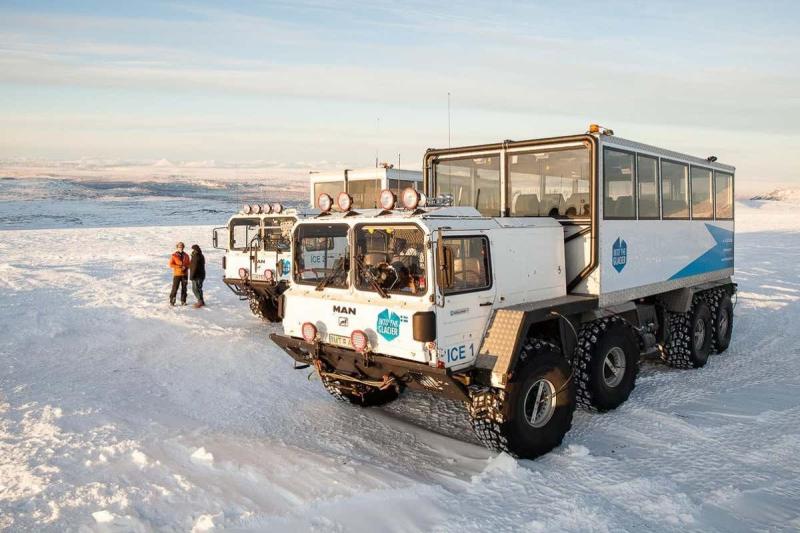Langjökull no es un glaciar cualquiera. Es el segundo más grande de Islandia y uno de los pocos del mundo que permite una visita segura a su interior gracias a un sistema de túneles excavados de forma controlada. Tras la recogida en el hotel y un trayecto que ya sirve como introducción al paisaje islandés, el viaje se detiene en Húsafell, una pequeña localidad rodeada de montañas y campos de lava. Allí comienza la parte más singular del recorrido: el acceso en camión de nieve hasta el corazón del glaciar.
